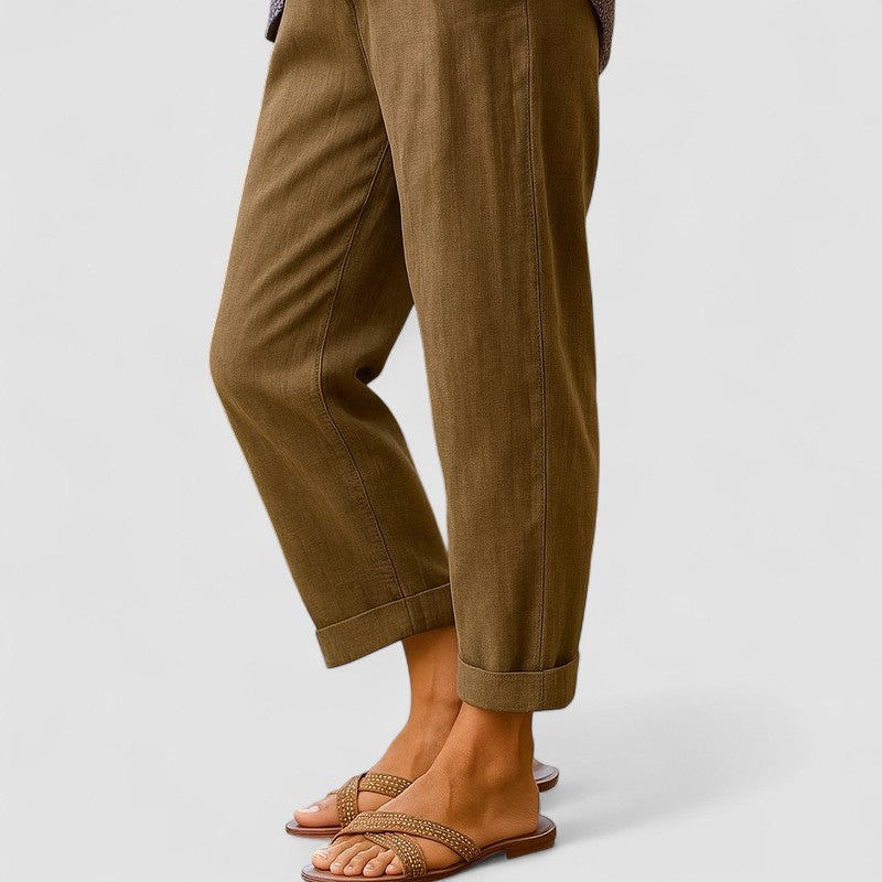 Mantenha-se fresca e estilosa durante todo o verão com a Elli. Confeccionadas com tecidos de alta qualidade e com um caimento leve e descontraído, estas calças de verão são essenciais para os dias quentes. Seja para caminhar, almoçar ou relaxar em casa, elas oferecem respirabilidade, estilo e conforto o dia todo.