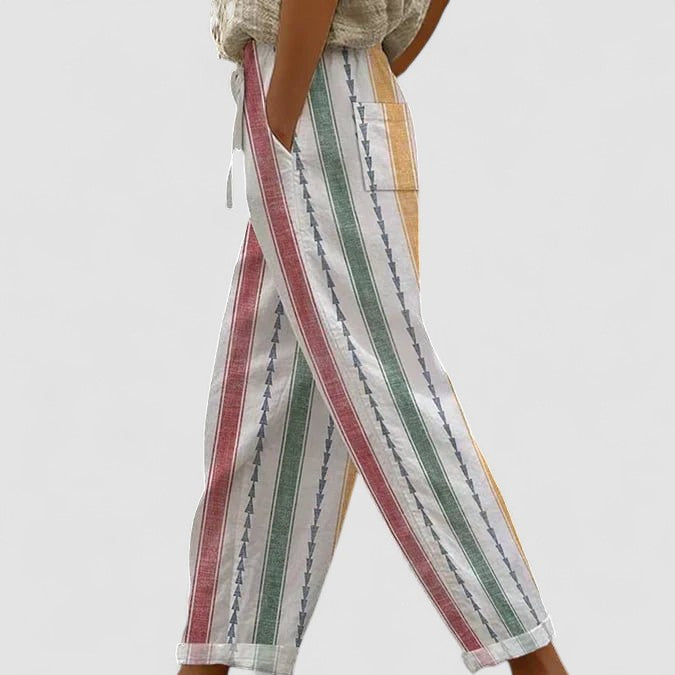 Francesca- Calças casuais para mulher com estampado retro às riscas e corte largo