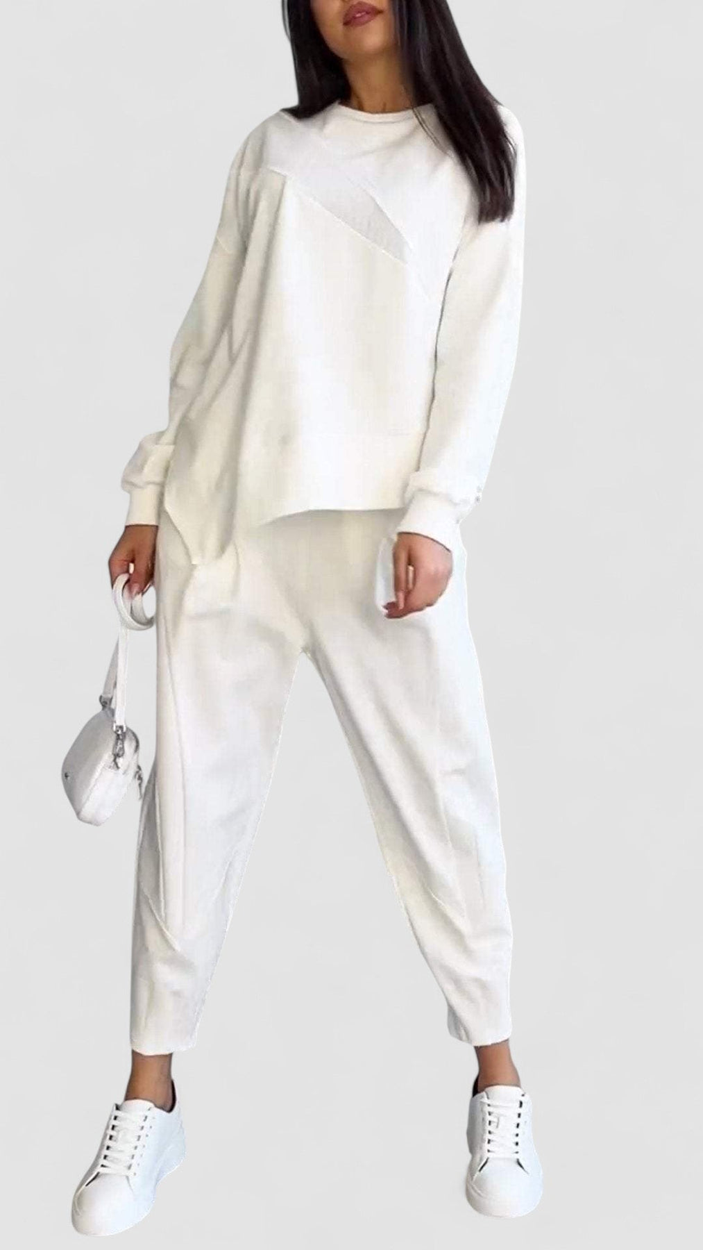 O Conjunto Babette é a escolha ideal para quem procura um visual casual, mas sofisticado. Fabricado em algodão de alta qualidade e mistura de fibras, oferece conforto duradouro e resistência ao desgaste. O design com gola redonda e mangas compridas garante um ar clássico e versátil, perfeito para o dia a dia, passeios ao fim de semana ou momentos de descontração em casa. Disponível em cores neutras que se combinam facilmente com qualquer estilo.