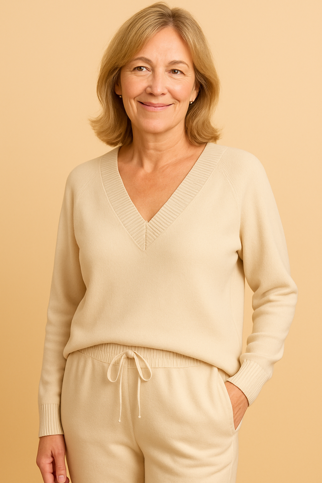 O Conjunto Nelinha combina suavidade e estilo para mulheres que valorizam conforto sem perder a elegância. Composto por um top de manga comprida com decote em V e calças coordenadas com cintura elástica ajustável, este conjunto suaviza delicadamente a zona da barriga, oferecendo uma silhueta lisonjeira. Perfeito tanto para relaxar em casa como para pequenas saídas, mantém-te elegante, confiante e confortável ao longo de todo o dia.