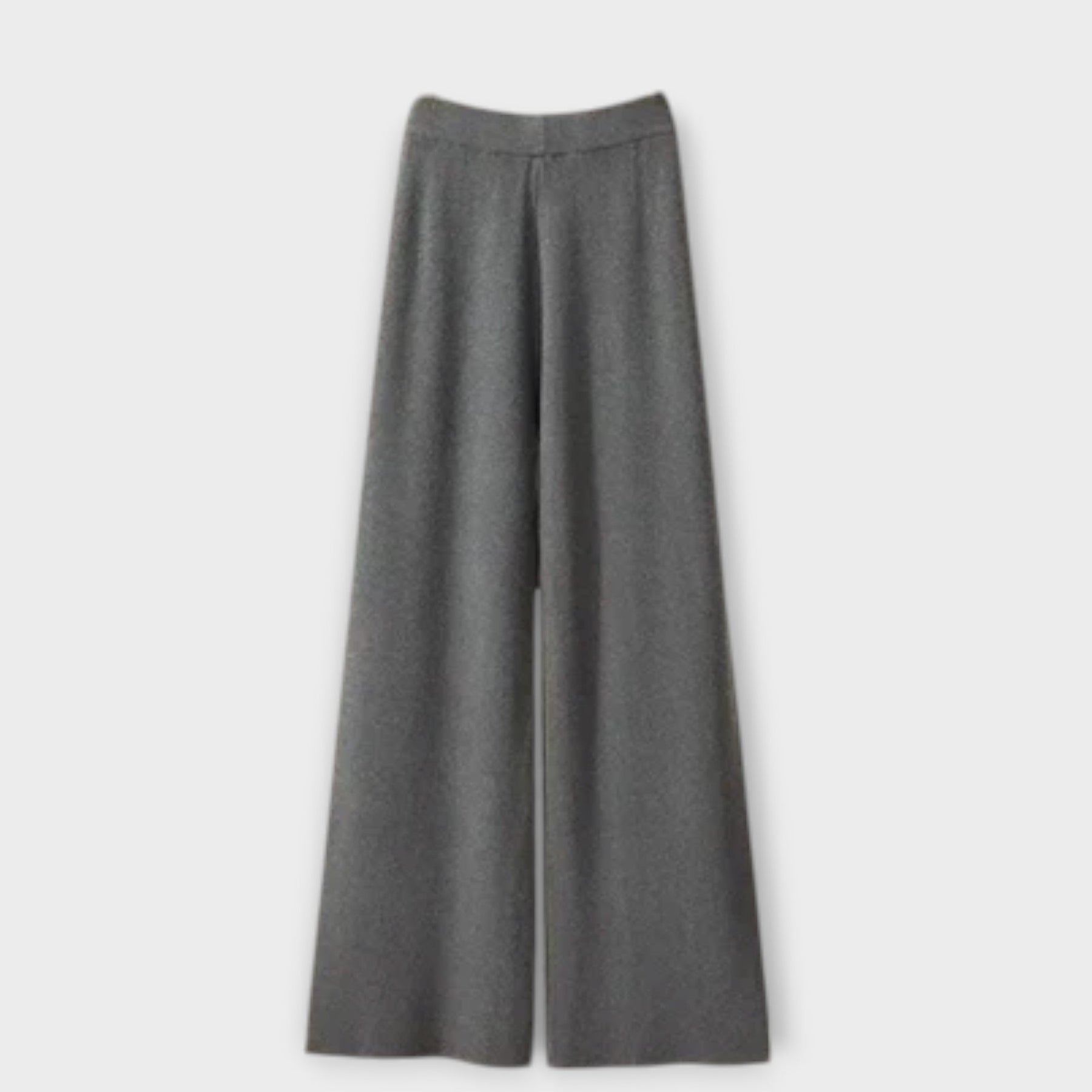 Calças de corte largo e camisola elegante para um look moderno e sofisticado.