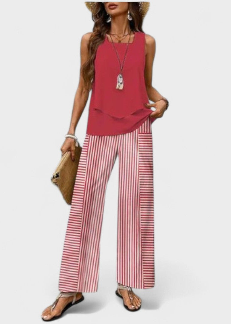 Isis | Conjunto Duas Peças com Top Sem Mangas e Calças de Corte Reto