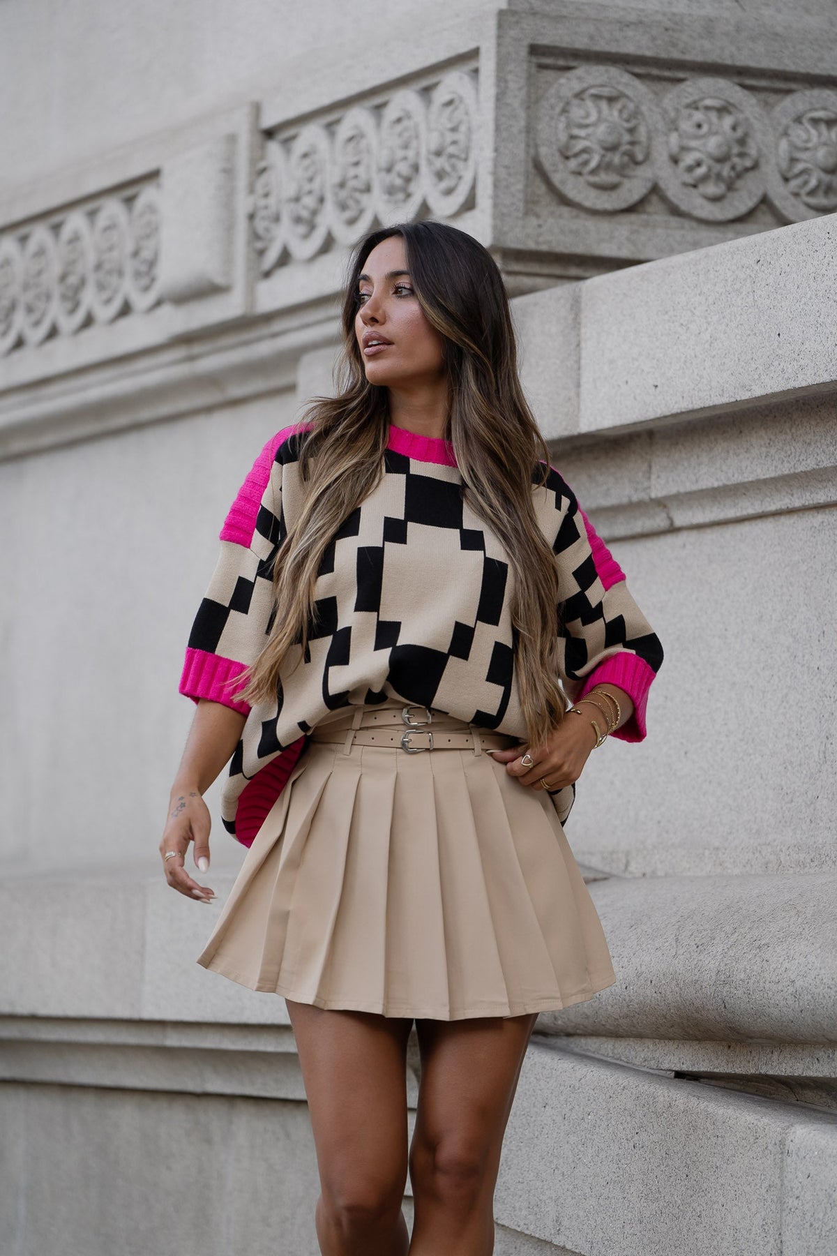 A saia-calção com pregas é uma peça versátil e estilosa que combina a elegância de uma saia com o conforto e a praticidade de um calção. Aqui estão os elementos típicos dessa peça: